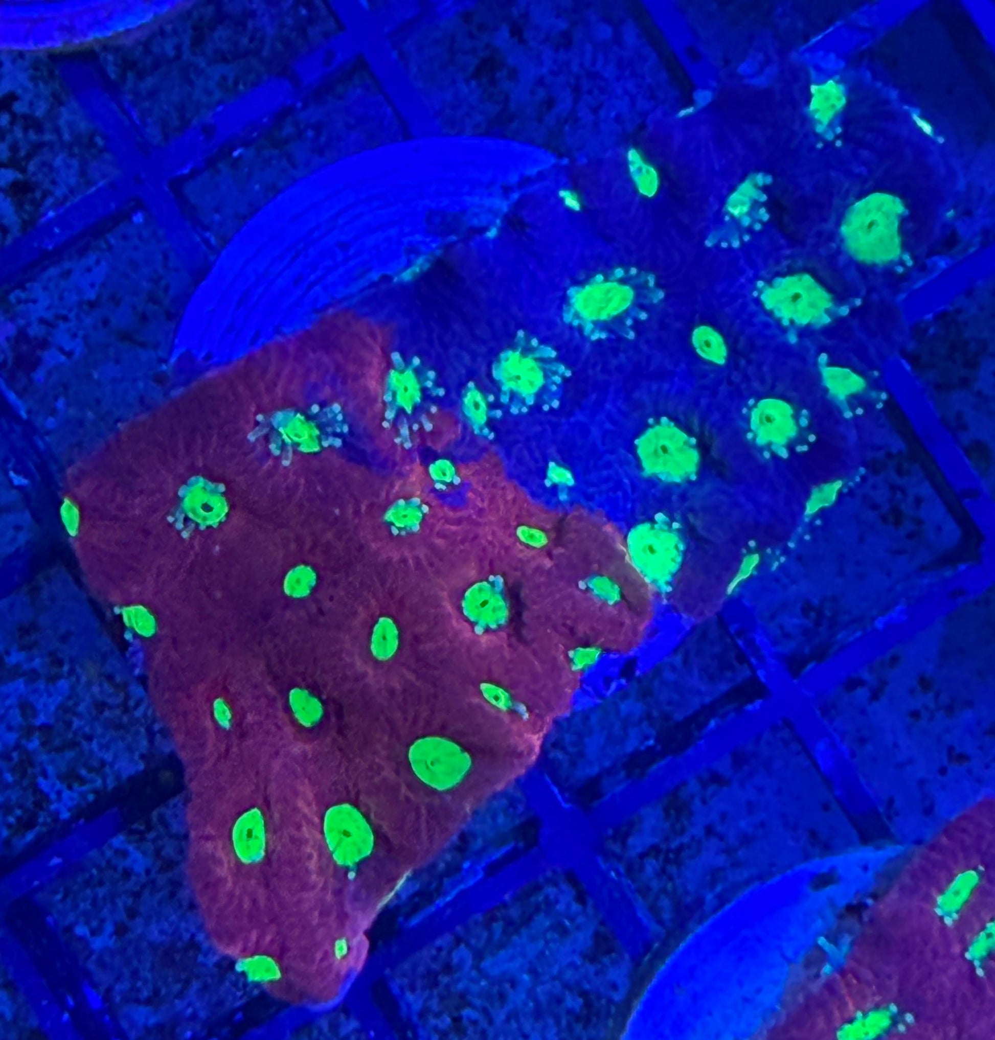 Die Favia „Fire & Ice“ ist eine robuste LPS-Koralle, die stabile Wasserparameter und mittlere Beleuchtung bevorzugt. Ihre kräftigen Zweifarb-Kontraste zeigen sich am intensivsten unter LED-Blauspektrum. Eine gelegentliche Zufütterung mit feinem LPS-Futter fördert die Farbdichte und das Wachstum. Wie bei allen Favien sollte auf Abstand zu anderen Korallen geachtet werden, da sie mit nächtlichen Sweeper-Tentakeln verteidigt.