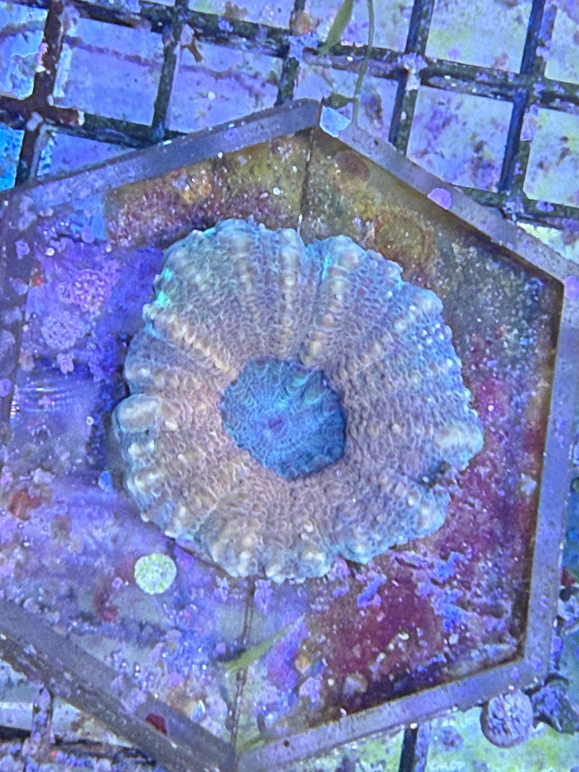 Die Scolymia „Sunset“ ist eine robuste, aber lichtempfindliche LPS-Koralle, die stabile Wasserparameter und eine ruhige Position im Bodenteil des Riffbeckens bevorzugt. Zu starke Strömung oder direkte Lichtbestrahlung kann das Gewebe reizen. Eine gezielte Fütterung mit feinem Frostfutter (z. B. Mysis, Cyclops) oder speziellem LPS-Futter fördert das Wachstum und verstärkt die Farbintensität.
